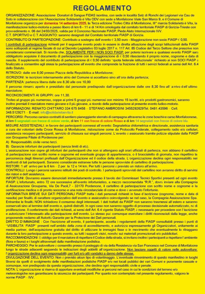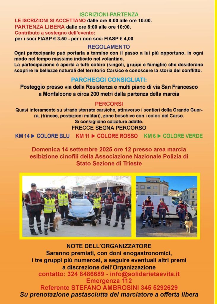 14 SETTEMBRE 2025 – MARCIA “SOLIDARIETA’ E’ VITA” – MEMORIAL GILBERTO SECCO