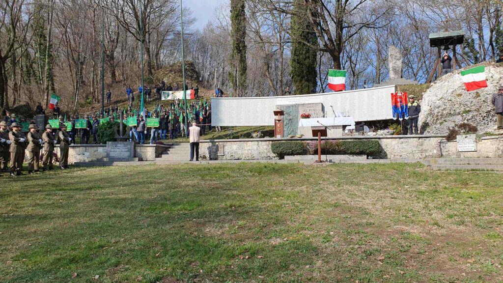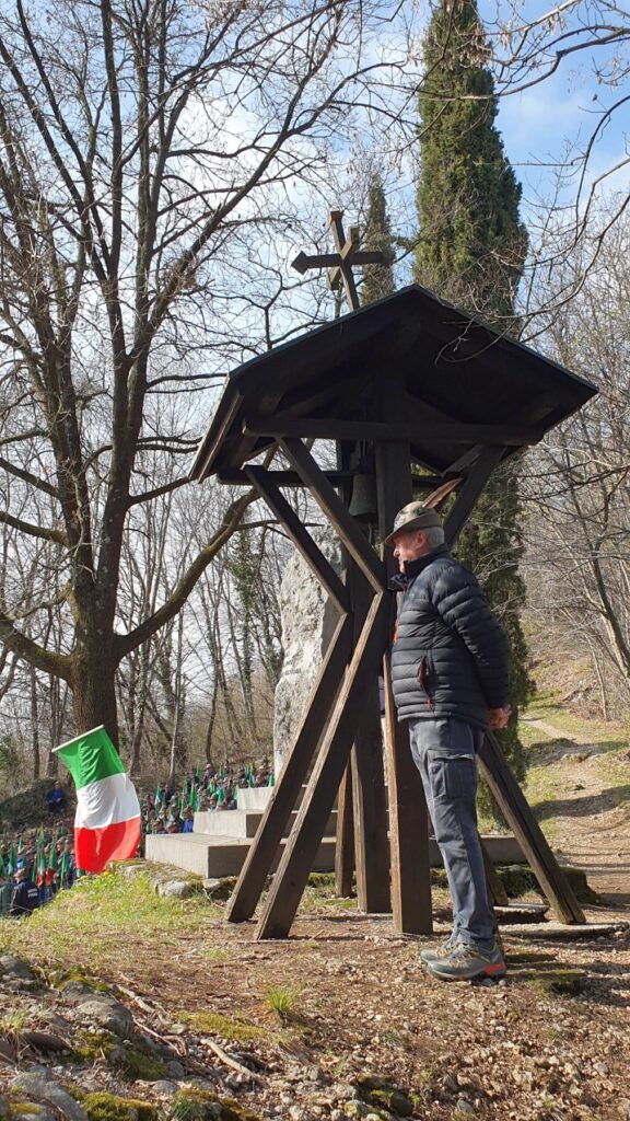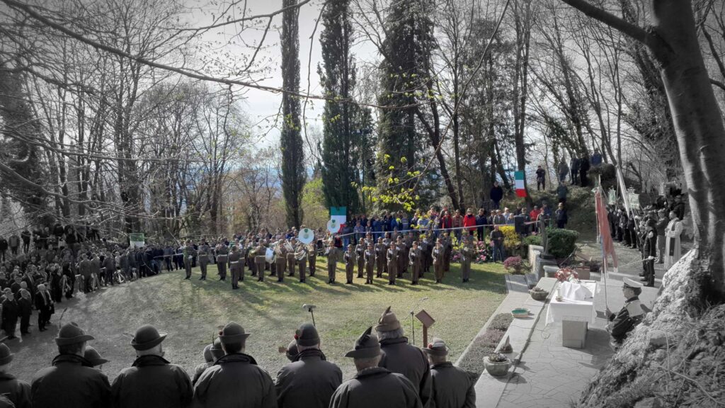 La cerimonia ha un sapore intimo: il numero dei partecipanti, anche se per lo più raccolti nel naturale anfiteatro con sullo sfondo l’altare e il monumento con i nomi dei caduti, non si quantifica, dispersi come sono anche negli spazi di un bosco cresciuto negli anni e ancora in riposo, mentre la vista della pianura e dell’ampio corso del Tagliamento apre a pensieri di ricordi, terre lontane e memorie.