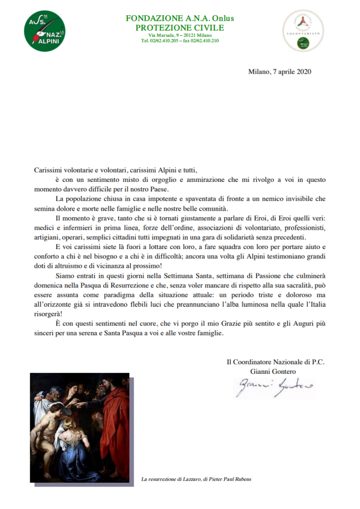 GLI AUGURI DEL COORDINATORE NAZIONALE ANA DELLA PROTEZIONE CIVILE